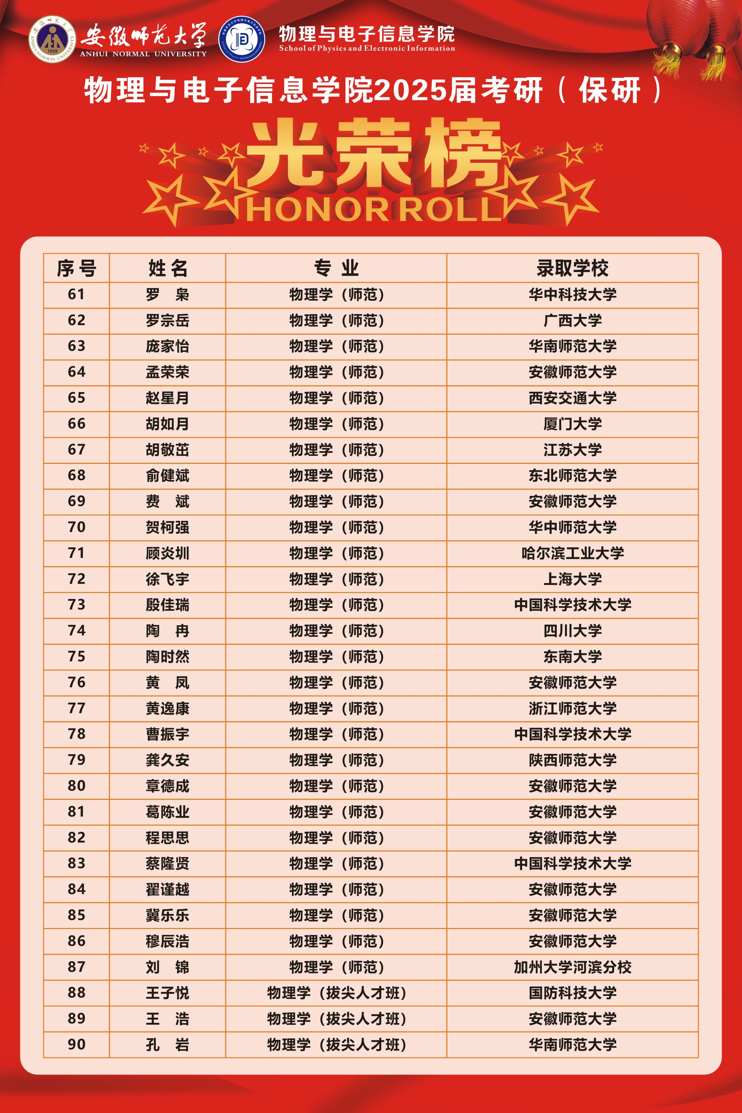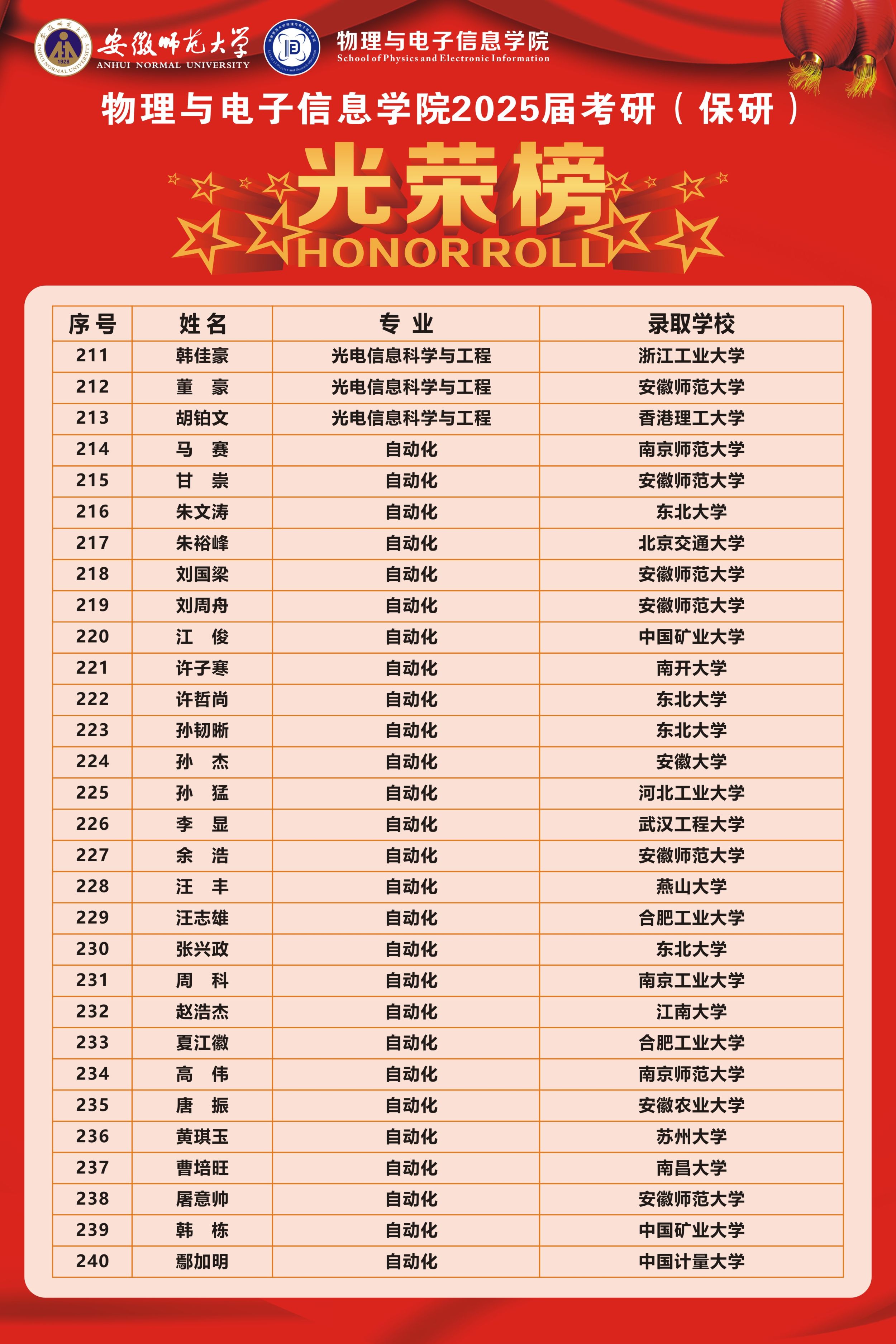m882025届本科毕业生共计566(含优师计划26人)人,继续深造人数达240人,占毕业生总数(不含优师计划)的44.44%,考研率稳步提升。其中237人被国内高校录取,3人被国(境)外知名公司录取。考取“双一流”高校、科研院所、出国(境)和本校人数占升学总人数的92.05%,包括浙江大学、南京大学、中国科学技术大学、华中科技大学、哈尔滨工业大学、四川大学、东南大学、北京师范大学、南开大学、厦门大学、中国农业大学、吉林大学、中南大学、湖南大学、华东师范大学、电子科技大学、重庆大学、东北大学等。