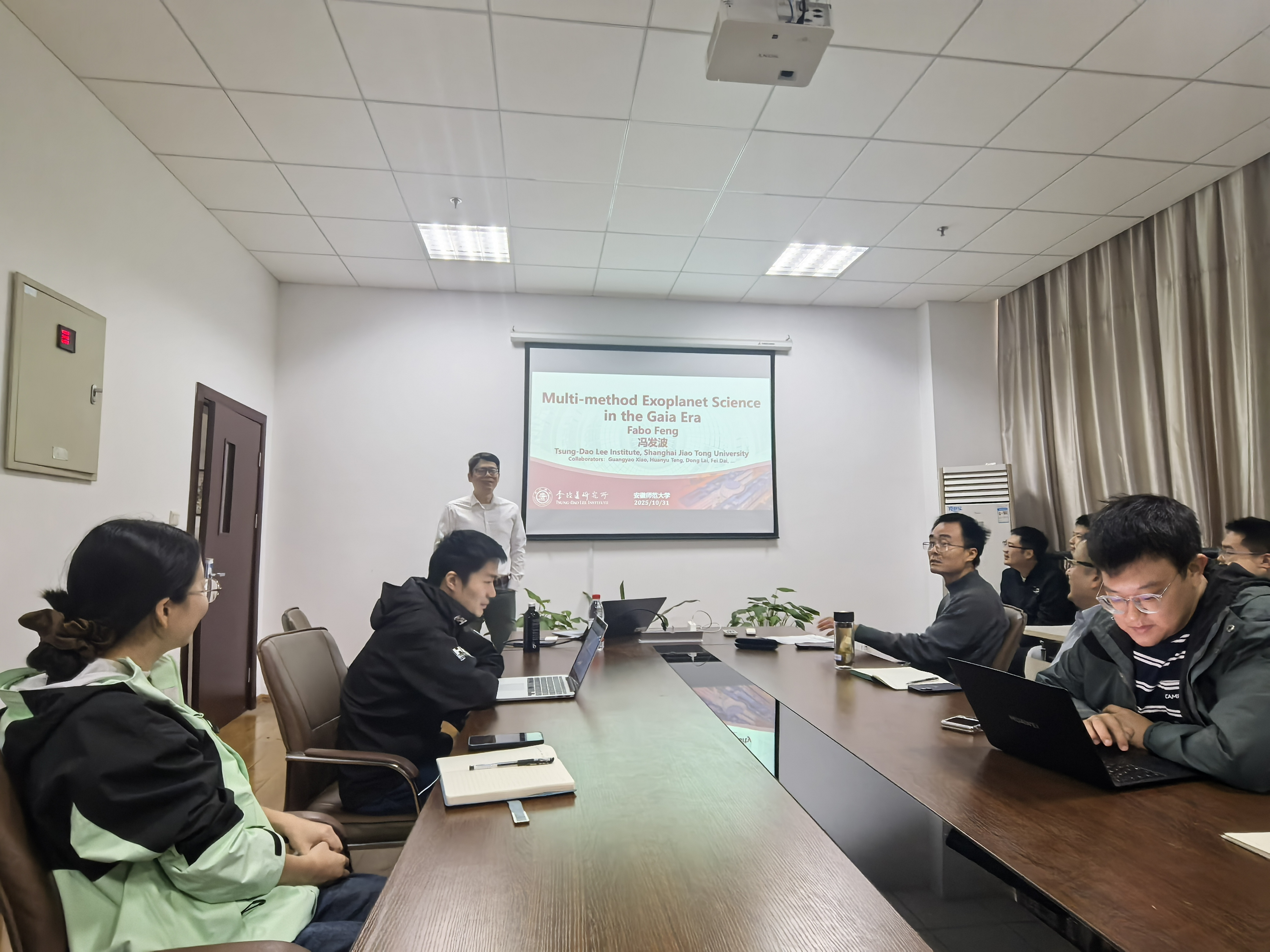 应m88邀请,上海交通大学李政道研究所冯发波教授于10月31日来校进行学术交流,并做了题为《Multi-method Exoplanet Science in the Gaia Era》的学术报告。报告会在m88429会议室举行,会议由m88晋升博士主持,m88相关师生参加了此次报告会。