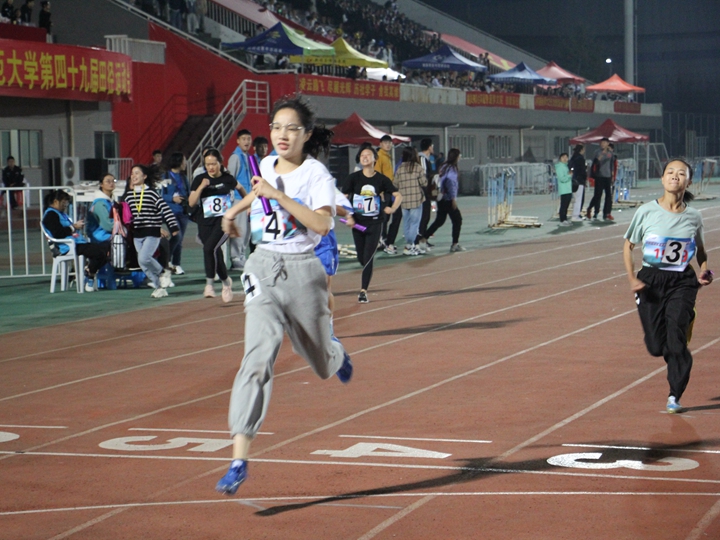 激情赛场,物电争先。赛场上,物电师生奋力拼搏。在男子甲组100米飞人大战中,刘志祥同学一马当先,赢得桂冠;跳远决赛刘志祥同学再获冠军;400栏决赛,强娟重、陈阳同学包揽冠亚军;1500米决赛,张翔宇同学一马当先,勇夺金牌;七项全能比赛,李明同学奋力拼搏,获得总积分第二。孙雪蓉同学获女子甲组100米亚军、200米季军;4×100米决赛中物电女将夺得亚军。教工比赛中,张杰老师斩获男子百米冠军、铅球亚军。
