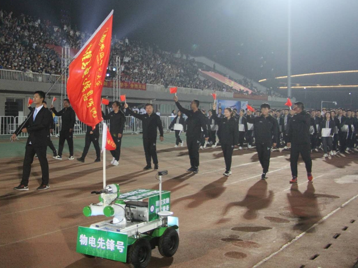 国士无双,科技兴邦10月27日晚,校运会开幕式上公司方阵队迈着整齐坚定的步伐,喊着铿锵有力的口号,在公司特色科技创新作品“物电先锋号”机器小车的引领走过主席台,向全校师生展示了物电人的风采。公司方阵元素:国士无双,科技兴邦!在特殊年份用这种特别的方式向抗疫英雄致敬。排舞队整齐划一的舞步跳出了物电学子的青春活力,一曲《我们都是追梦人》点燃了全场的热情,将开幕式气氛推向高潮。