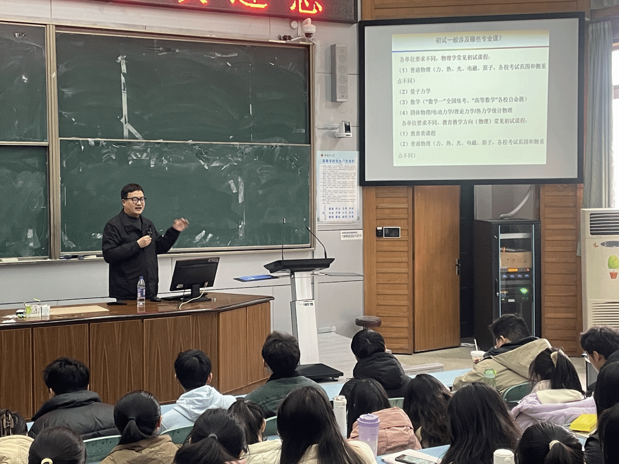 3月6日下午,m88在1号教学楼报告厅举行2025届物理学就业前置教育暨考研择校指导会。物理学(师范)专业负责人吕建平教授、全体2025届物理学拔尖人才班、物理学师范班以及全体辅导员参加会议。