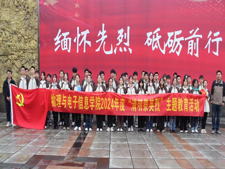 活动中,全体师生排着整齐的队伍,怀着无比崇敬的心情来到烈士纪念碑前,对为保卫家乡、保卫祖国而献出青春热血的革命英烈表示沉痛的哀悼。员工代表向革命烈士敬献鲜花并整理挽联,全体参加人员低头静立并默哀,以此寄托哀思,歌颂和缅怀革命先烈的无私奉献精神。聂翔同学带领全体成员重温入团誓词。“理响物电”宣讲团成员朱雯同学以“心至苍穹外,目尽山河远”为题展开宣讲,希望各位青年学子能自觉传承民族气节、崇尚英雄气概,学习英雄、铭记英雄,以烈士们为榜样,努力学习,不断进步,为实现中华民族的伟大复兴而努力奋斗。张逊同学作为员工代表发言,希望同学们铭记历史、珍惜当下,继承遗志,为国家富强民族复兴贡献青春力量。