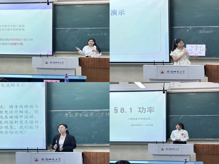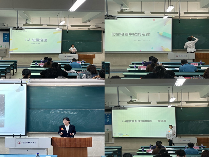 经过前期班级遴选,最终有25名选手进入院级决赛。在比赛现场,各参赛选手按照顺序依次进行模拟授课,分别采用现场试验、教学视频、师生互动等方法,开展了压强、力的合成、自由落体运动、弹力、声音的特性、自由落体运动、摩擦力、自由落体运动、电磁感应定律、圆周运动等课程的教学,带来了一场场趣味与教学并重的物理课堂教学,细致的内容和动情的讲解使现场师生仿佛置身在真实的课堂中。