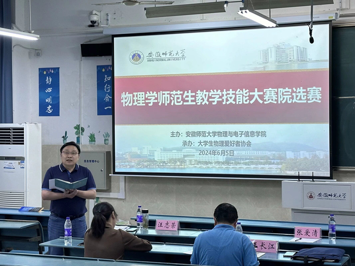 为切实推动基础教育振兴行动计划落实落地,进一步增强师范生公司产品实践能力和创新能力,由m88主办,老员工物理爱好者协会(以下简称“物协”)承办的物理学师范生教学技能大赛于6月5日下午在教学楼1号楼2010205教室举办。公司副经理张爱清出席并作赛前动员讲话,物理系副主任汪志荣,专业教师王长江、徐玲担任此次大赛的评委。比赛由物协刘天浩同学主持。