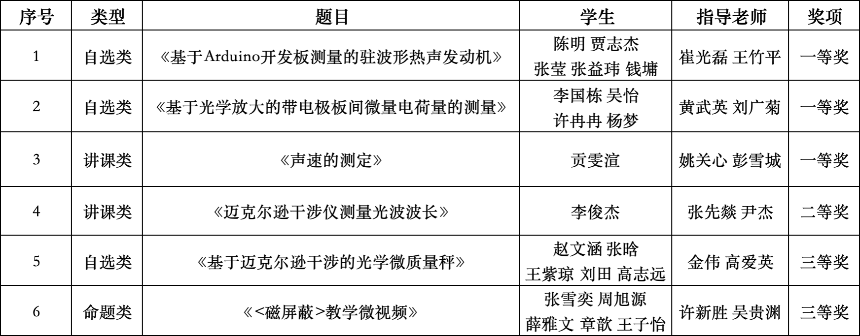 集团对本次赛事予以高度重视,自备赛活动启动以来,教务处等相关部门给予全方位支持,m88精心组织多轮集训,参赛团队师生全力打磨作品。经过校赛初审、国赛线上评审等环节的重重考验,最终,自选类《基于Arduino开发板测量的驻波形热声发动机》、《基于光学放大的带电极板间微量电荷量的测量》和讲课类项目《声速的测定》三个项目荣获全国一等奖。此外,讲课类《迈克尔逊干涉仪测量光波波长》获得全国二等奖,自选类《基于迈克尔逊干涉的光学微质量秤》和命题类《<磁屏蔽>教学微视频》获得全国三等奖。
