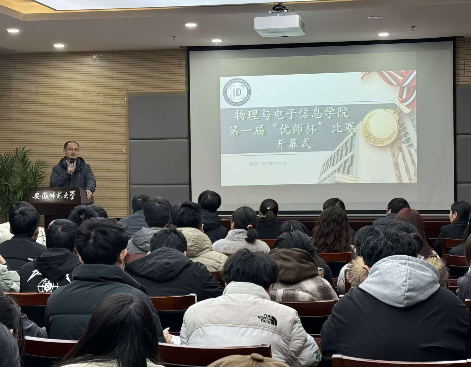 12月5日晚,比赛正式拉开帷幕,开幕式由物理学专业副主任黄武英主持,公司科研副经理盛晓伟发表致辞,他强调了“优师计划”师范生培养的重要性,期待选手们在实践中精进专业技能,提升教书育人本领。物理学专业副主任汪志荣勉励同学们以赛促练、以赛促学、以赛促教,努力成长为具有高尚师德、先进教学理念、扎实教学技能的优秀教师。2021级优师班辅导员刘冠琪通过分享“初心”“自证”“实干”三个关键词,希望全体优师员工坚定教育情怀,提升综合素养,以更加扎实的教学技能投身到基层教育。2022级优师班员工代表李易宁讲述学习路上的成长感悟,表示同学们将珍惜此次交流学习的机会,扎实锤炼教育基本功,为日后成为一名优秀教师打下坚实基础。