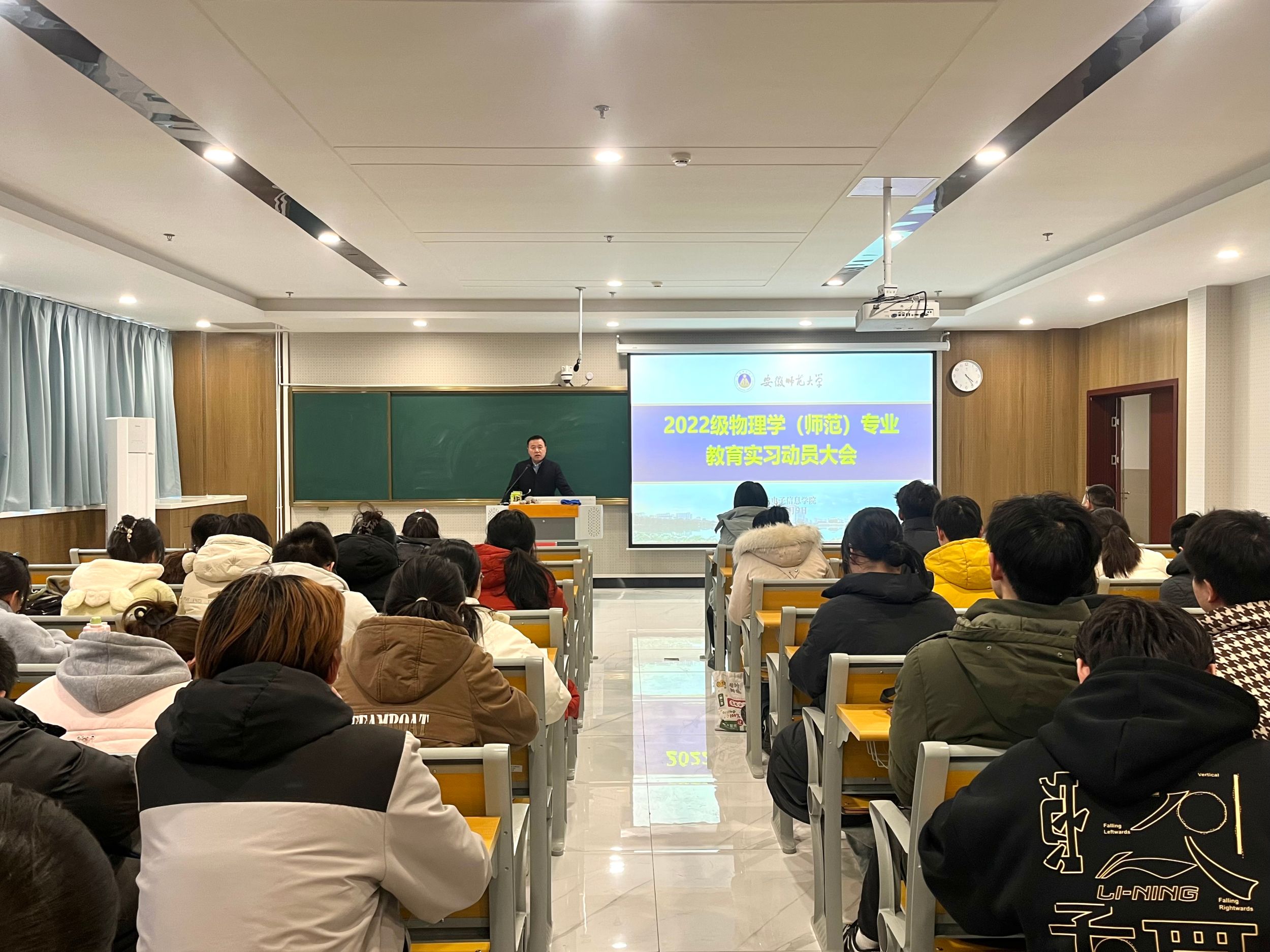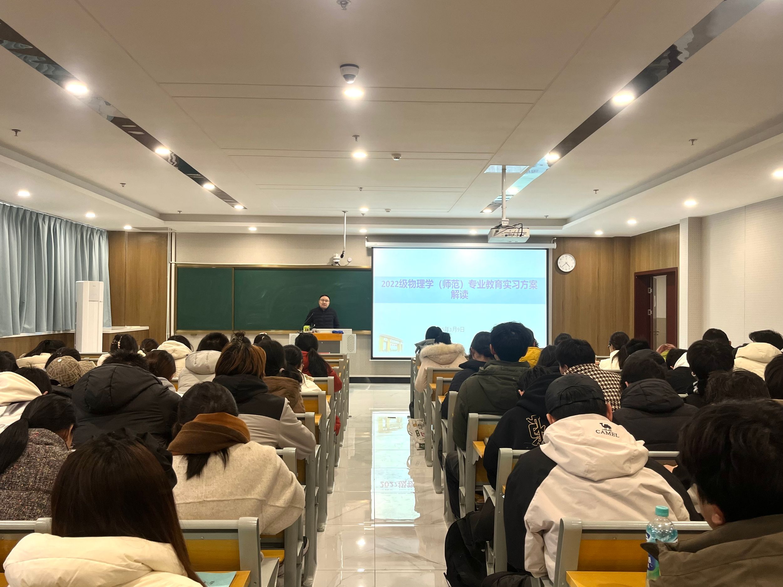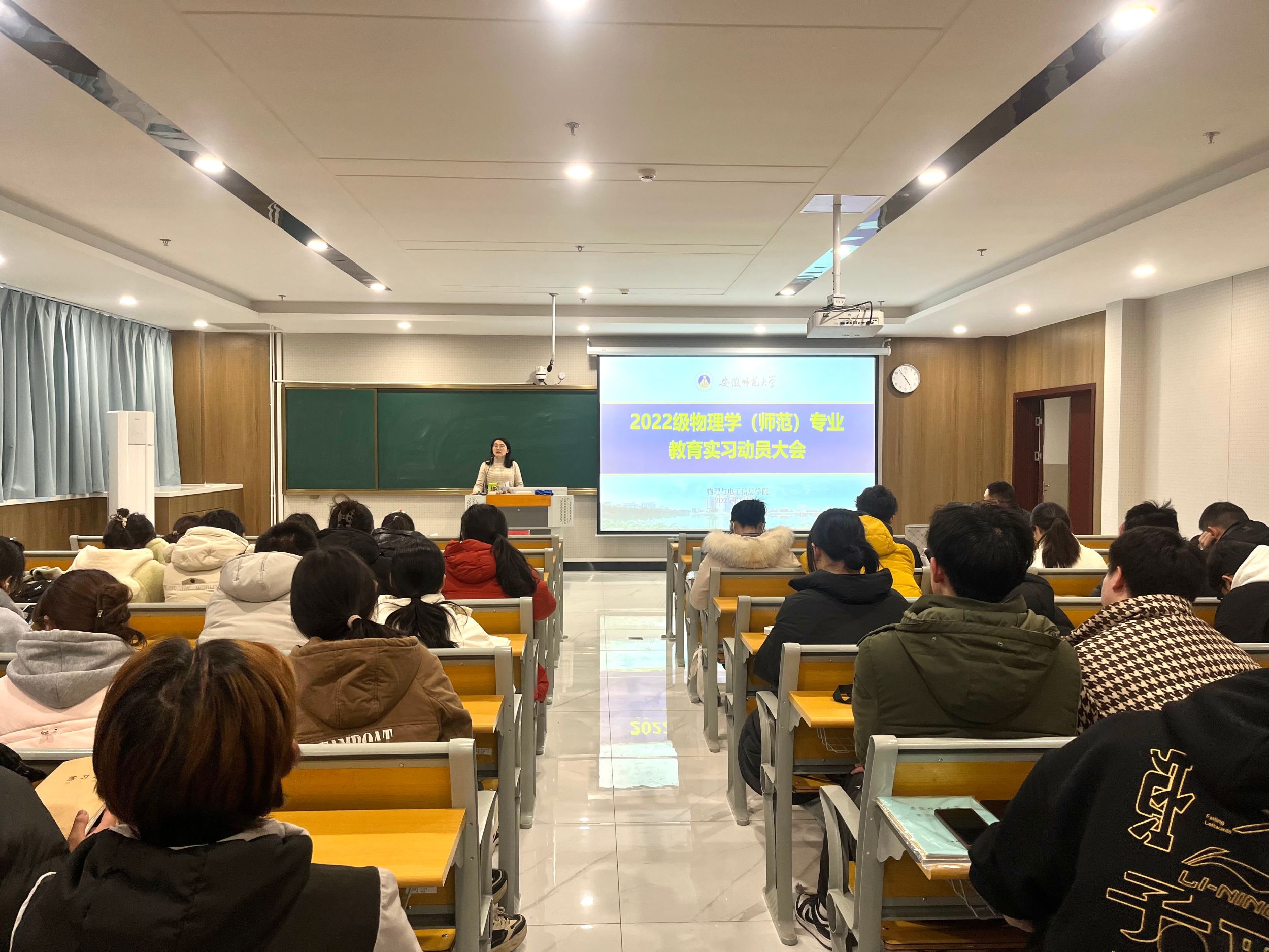 为深入落实基础教育振兴行动计划,切实做好师范专业教育实习工作,1月9日下午,m88组织召开2022级物理学(师范)专业教育实习动员培训会。公司党委副书记黄友生,物理学专业副主任汪志荣,2022级物理学(师范)专业辅导员刘敏及全体员工参会,会议由公司教学副经理张爱清主持。