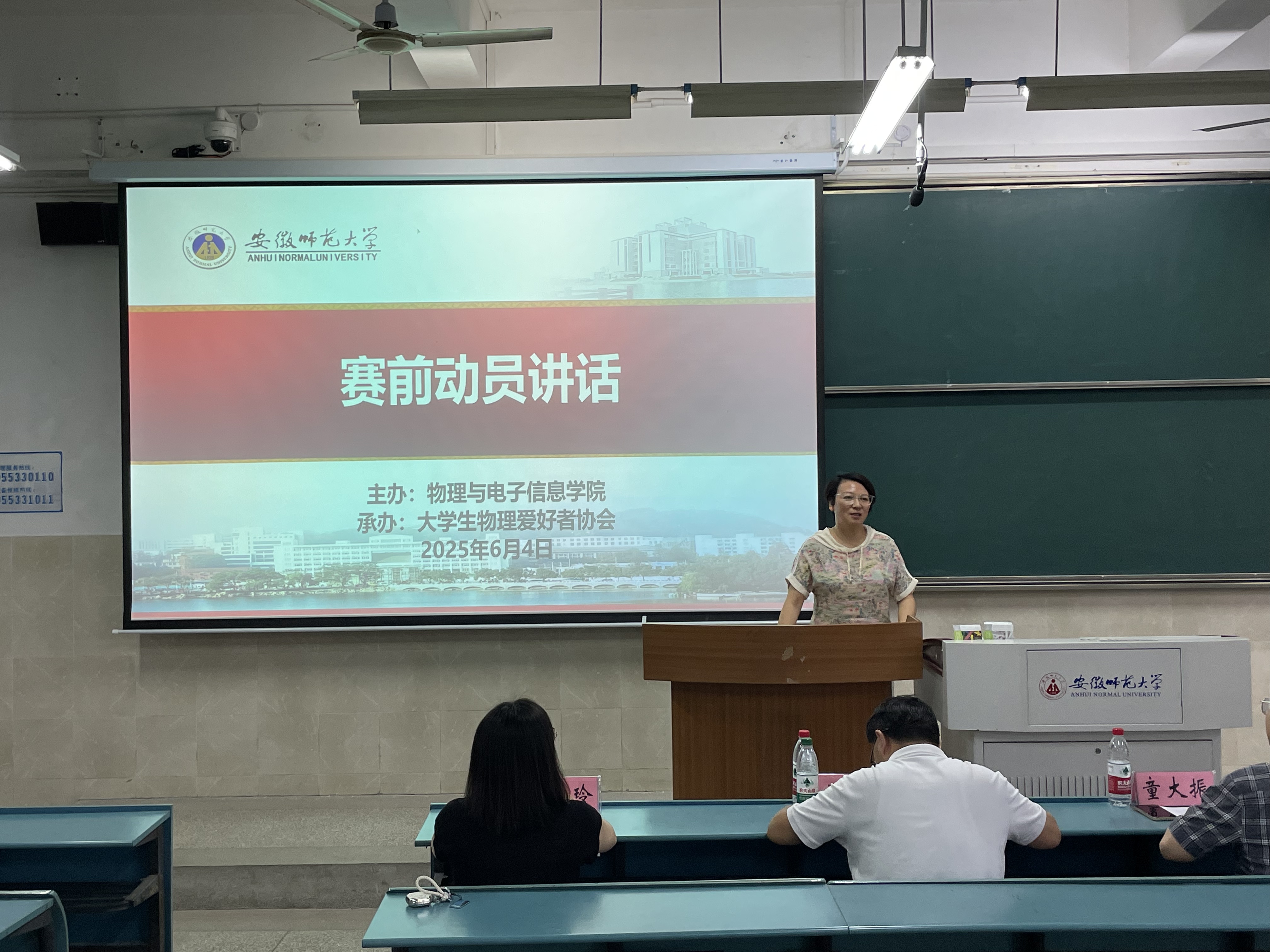 物理系副主任黄武英在赛前做动员讲话。她对进入决赛的28名选手表示祝贺,对老师们的悉心指导和物协的精心组织表示感谢。强调公司正在大力实施“基础教育振兴”行动计划,着力打造金牌教案、金牌教练、金牌师范生“三金”工程和一批具有国内一流水平的精品核心课程,开展师范生教学技能大赛是打造“三金”工程的应有之义,勉励同学们努力做到知行合一,在学习和生活中主动思考、不断创新,多站讲台、站稳讲台,切实提升师范生技能。