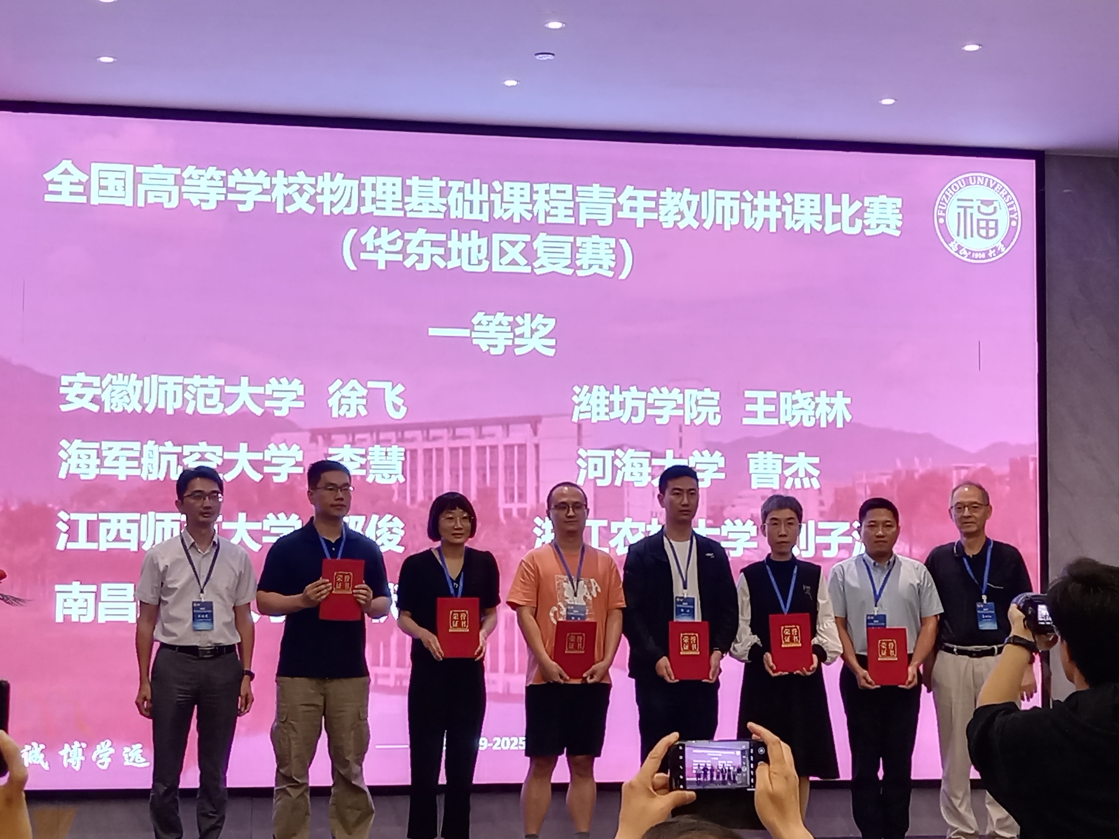 5月29日-6月2日,2025年全国高等公司物理基础课程青年教师讲课比赛华东地区复赛在福州大学成功举办,公司m88青年教师徐飞继安徽省初赛之后再次取得突破,荣获华东地区复赛一等奖。