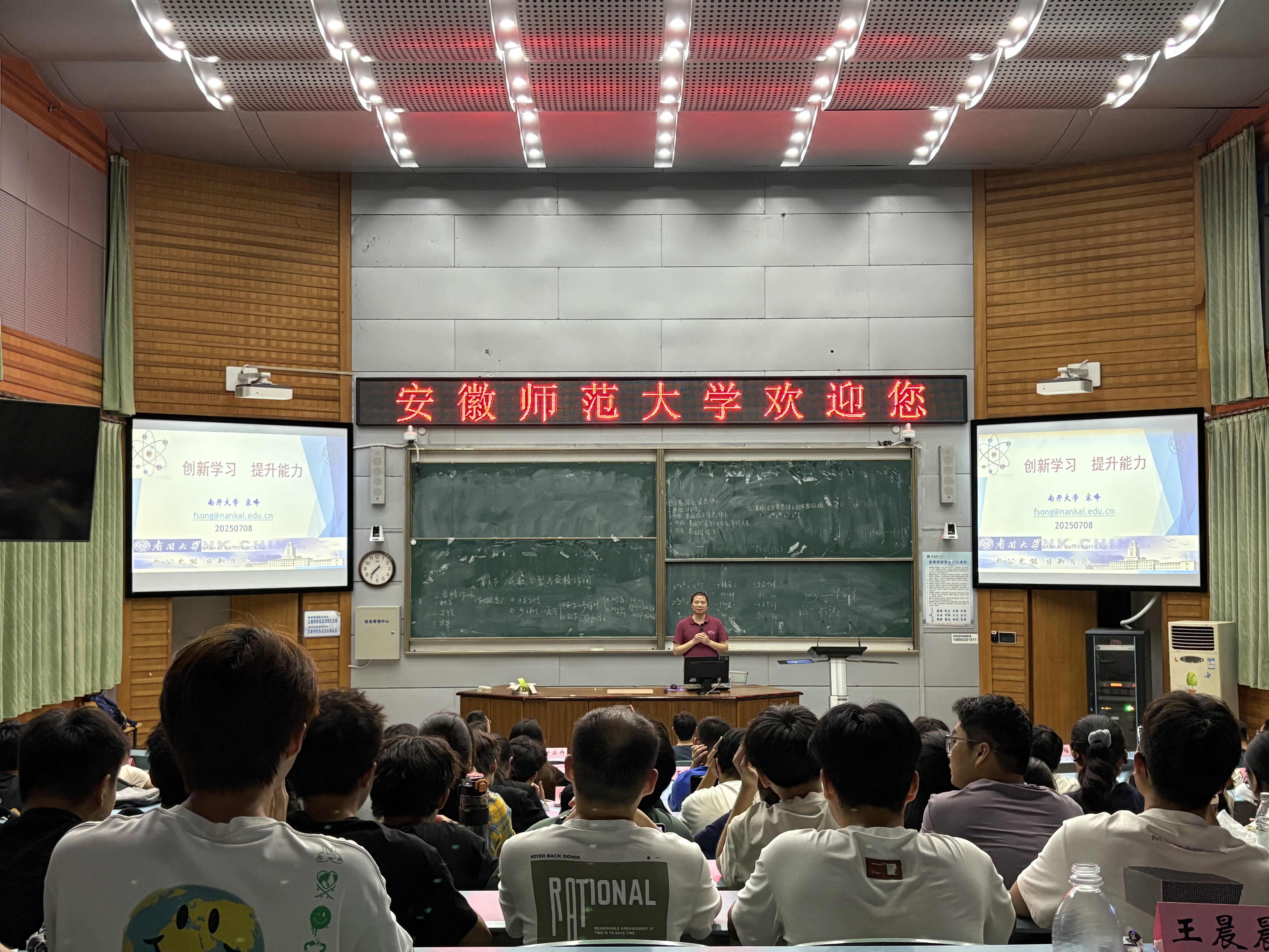 会上,宋峰以物理奥赛为切入点,通过对国际国内物理奥赛试题的剖析,说明创新学习的重要性,阐述创新学习对提升思维能力、学习能力等方面能力的作用,以及对学习和科研的促进。他强调,作为物理学专业的师范生,要时刻保持学习状态,不断突破自我;要不断学习、不断思考、不断创新,提升教学能力,强化综合素养。