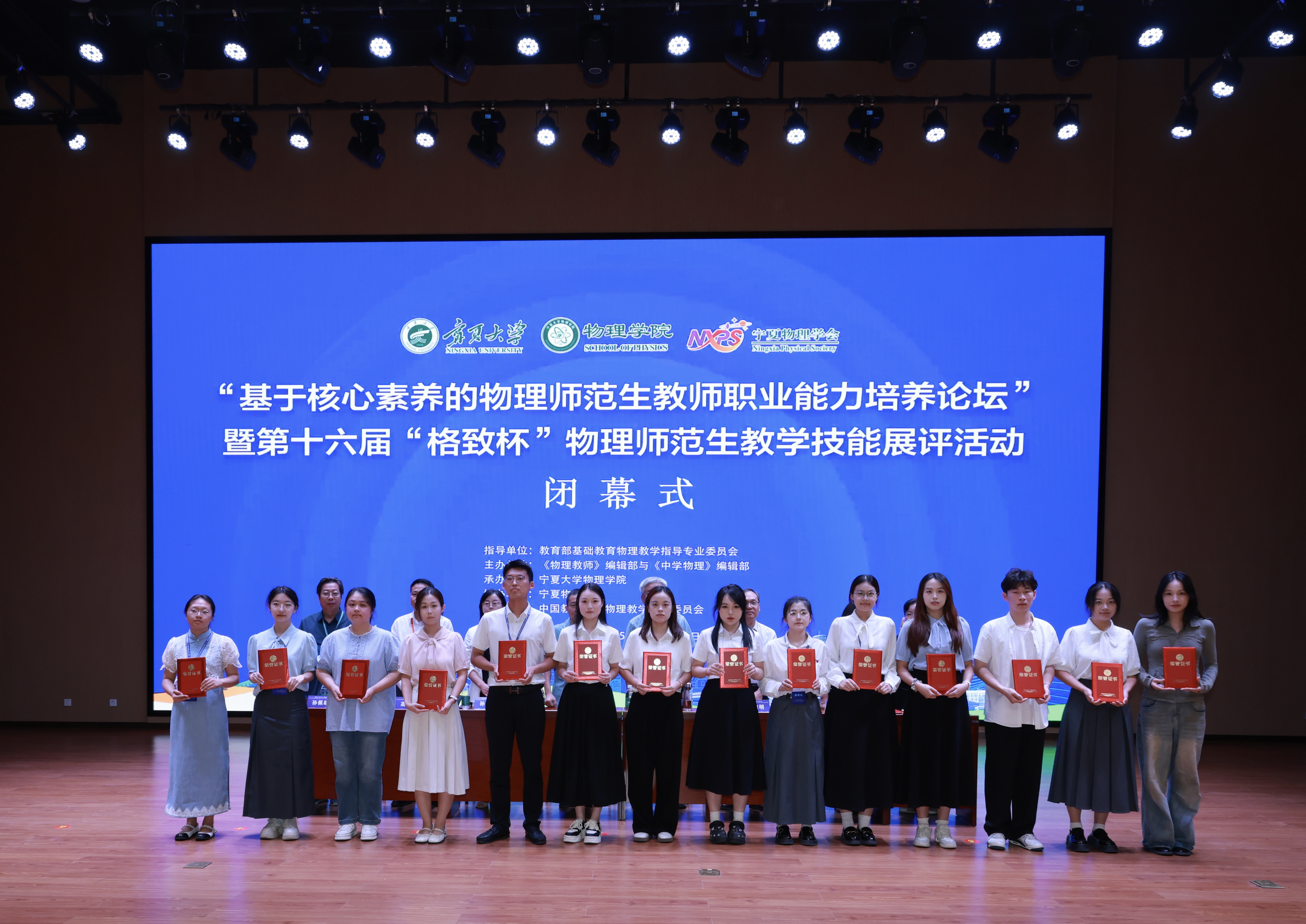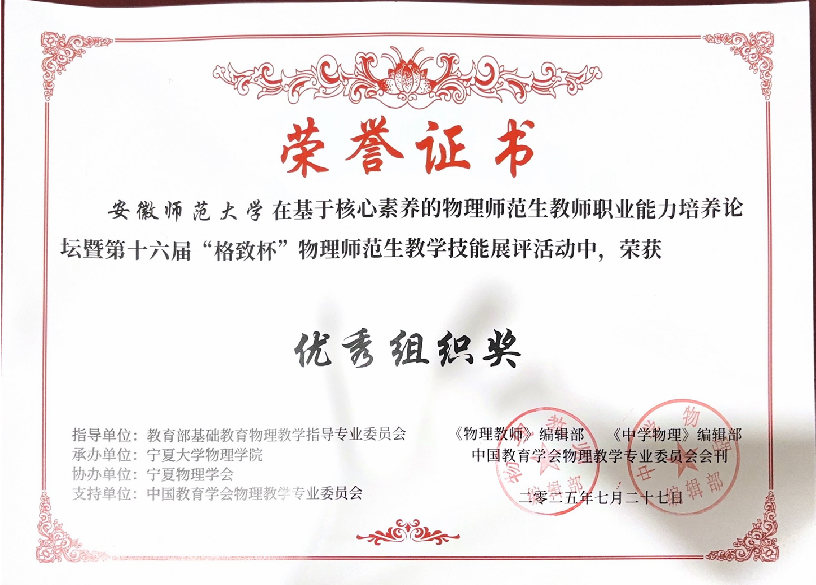 7月25日-27日,由教育部基础教育物理教学指导专业委员会指导、《物理教师》编辑部和《中学物理》编辑部联合主办的基于“核心素养的物理师范生教师职业能力培养论坛”暨第十六届“格致杯”物理师范生教学技能展评活动在宁夏大学成功举行。物电学子在教学技能展评中获得一等奖(最高奖)7项、二等奖5项、三等奖1项,在论文展评中获得一等奖(最高奖)1项、三等奖1项,公司荣获优秀组织奖,创历史最好参赛成绩,实现新的突破。