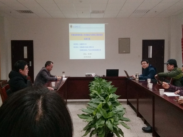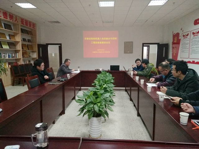 1111会议伊始,郑贤锋首先对工程实验室的获批表示热烈祝贺,并强调了安徽省智能机器人信息融合与控制工程实验室建设之初做好实验室的机构设置和职责分配的重要性。随后,工程实验室主任刘小明教授分别从实验室的建设背景、团队情况、现有的研发条件和能力、未来发展的目标与思路、实验室建设的主要任务以及如何实现工程实验室的工程化和产业化等5个方面对实验室的组建方案做了详细的汇报。期间,与会的各位老师分别就工程实验室的建设和发展积极发言,献计献策。在各位老师和领导讨论之后,推选张爱清教授、郑睿副教授、卢自宝副教授为研究方向带头人,甘露老师为工程实验室秘书。