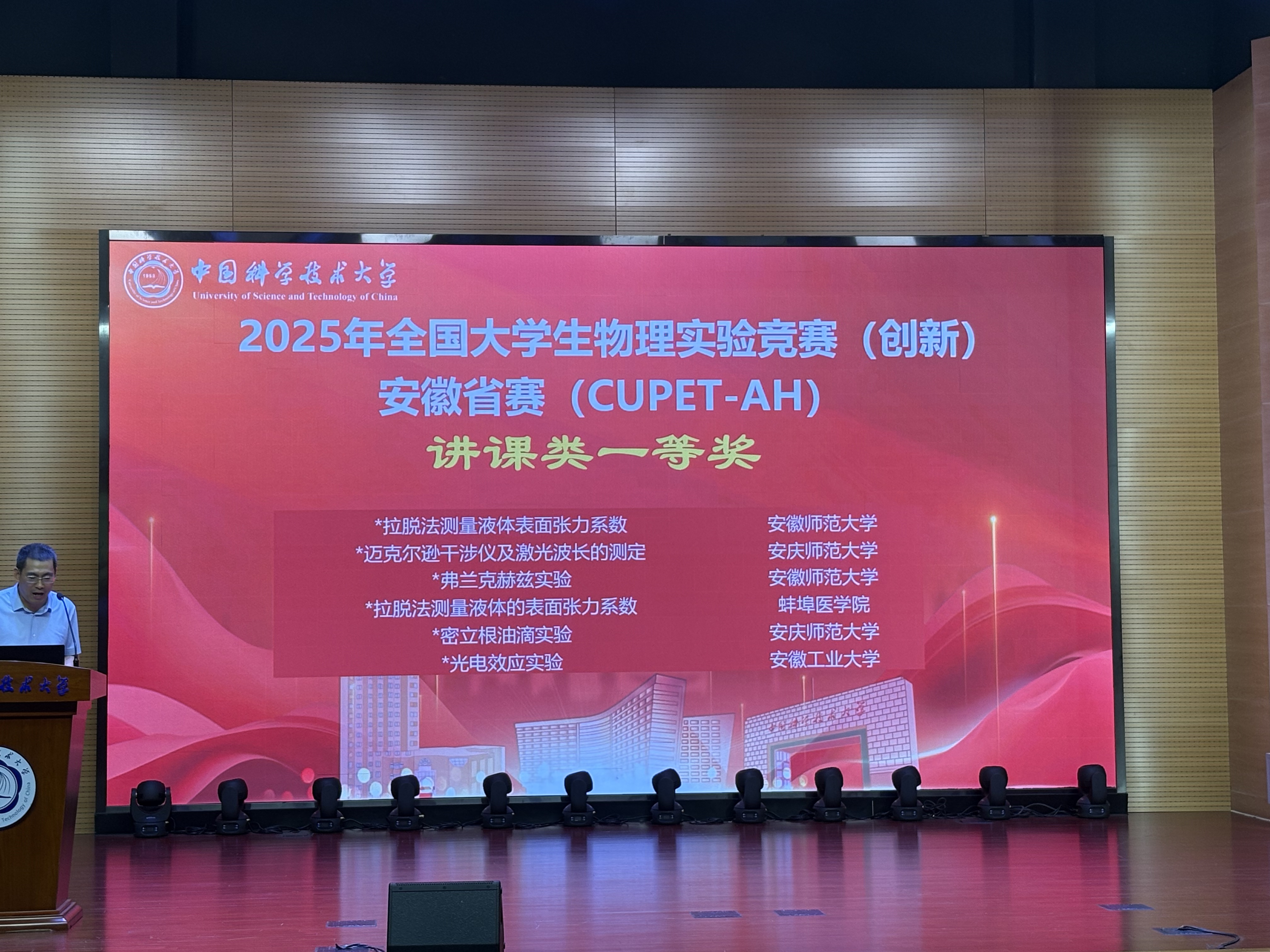 集团对本次赛事予以高度重视,自备赛活动启动以来,教务处等相关部门给予全方位支持,m88精心组织多轮集训,参赛团队师生全力打磨作品。经过校赛初审、省赛初赛线上评审等环节的重重考验,最终,讲课类《拉脱法测量液体表面张力系数》、《弗兰克赫兹实验》两个项目分别以第一名和第三名的成绩获得安徽省一等奖,并获得国赛直通车的资格。此外,讲课类《用衍射光栅测光波波长》、《玻璃折射率的测定》获得安徽省二等奖,讲课类《全息照相》、《双棱镜测波长》和命题类《光影密码:X射线如何“看见”晶体里的原子?》、《密立根油滴实验》、《简谐振动的合成》获得安徽省三等奖。