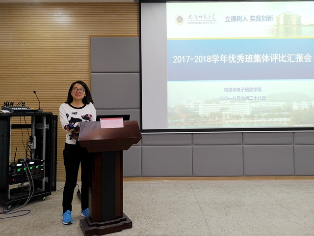 10位申报班级班长依次上台汇报,展示班级基础建设、特色工作和创新成果。17物理1班创设的班级工作监察委员会制度、“十分精彩”主题演讲有效地帮助同学们在方圆中增长才干,在活动中磨砺技能。17电子1班的校园文明行、25公里毅行拉练等特色活动不仅增进了同学友谊,也提高了班级凝聚力。16通信1班通过成立科创探究小组、举办举办党团活动让同学们在躬身实践中提高自我、坚定信念;他们积极组织班级成员参加无偿献血、义务支教等志愿活动,在奉献中感恩社会、回报社会。汇报会上,各参评班级展现出的优良的班风学风、丰硕的科创成果、团结的班级氛围,得到了评委老师和学干代表的一致肯定。