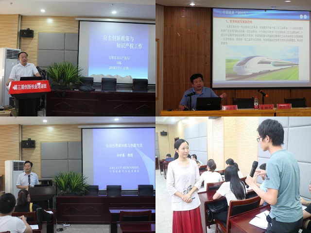 为帮助学员掌握创新创业方法,培训班科学编排课程,邀请安徽省知识产权局副局长刘栋、芜湖市知识产权局局长杨少华、安徽工业大学创新教育公司经理及中国创造 学会副理事长冷护基、安工大创新教育公司副教授陈霞、芜湖市专利代理公司专家、市孵化器专家、m88官网朱向冰、王霞霞、陶海升,高级知识产权工程师吴 长义等一批校内外专家亲临培训班集中授课,课程包括创造性思维与方法、国家及安徽省知识产权发展形势与政策解读、创新方法与技能、专利文件撰写方法等理论 知识。教师把实践经验融入课堂教学,用亲身经验为学员讲解具体的创新创业问题,帮助学员掌握创新技能、熟悉创业基本流程和方法,提升学员综合素质。