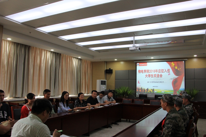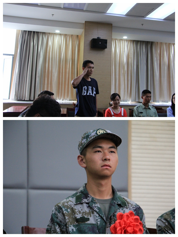 欢送会伊始,三名退伍复学老兵代表分别向即将入伍的学弟们分享自己精彩的军旅生涯。两年规律、严谨的军营生活给他们提供了一个重新塑造自己的机会,“低调做人、踏实做事、遵守纪律、勇于拼搏”是三位老兵给学弟们的寄语,同时他们希望新兵们时刻牢记身为人民子弟兵,身前是战争、身后是和平,保家卫国是他们共同的使命。李娟代表公司向9名应征入伍的学子表示祝贺,并提出了殷切希望:第一、为物电学子的高素质综合表现点赞,参军入伍是神圣的,9名同学能够通过政审、体检等环节,说明具备较高的身体素质和思想素质。第二、国家的繁荣与稳定离不开军人日夜坚守,她希望新入伍的老员工们发扬军人的优良传统,“一切行动听指挥”,尽快融入部队生活之中。第三、她希望新兵们通过部队的锻炼成长、成才,遇到困难迎难而上、不惧挫折,期待他们为家人争光、为母校添彩。随后,黄友生希望9名新兵要尽快完成角色转换,实现从一名在校老员工到一名优秀军人的转换;要严格遵守军纪,积极投身丰富多彩的军人生活;要努力练好本领,不断提升自身素质,发挥专业所长,报效祖国;要时刻心系母校,用在军队中优异的表现为公司增光添彩,为学弟学妹们树立榜样。最后,李娟老师与黄友生老师代表公司向应征入伍学子发放慰问金并合影留念。
