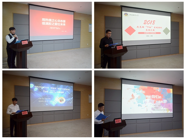 汇报会上,21个队伍按照抽签顺序依次上台展示团队风采。他们中有连续十三年奔赴偏远山区、大山深处进行义务支教的“千方爱心公司”;有走进高新技术企业生产一线,锤炼动手能力和艰苦品质的中国电子集团41所实习团队;有利用专业所学,前往棚户区和贫困家庭进行家电维修的科技志愿服务团队;有多次为校争光、屡创佳绩的学科竞赛团队。汇报选手们在台上激情洋溢地讲述着他们的实践经历和青春故事,现场的观众听得津津有味、掌声不断。