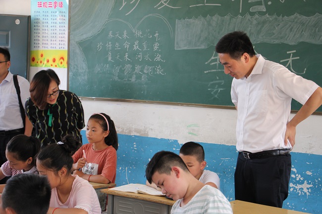 本次支教活动面向整个枞阳县进行自主报名,一共累计招收到100多位员工,支教团队将不同年级的孩子们进行分班,开展针对性教学活动并指导员工完成暑期作业。领导老师们走进支教课堂,炎炎夏日,教室里坐满了员工,虽然教室里只有几台吊扇,但丝毫未影响孩子们学习的热情。当走进第二间教室时,一节别开生面的小学数学课正在进行,以兴趣为导向、师生互动笑声不断,当梁燕老师在教室后面问一位小女孩:“你喜欢这个老员工哥哥上的课吗?”“喜欢!”小女孩说完后,腼腆的笑了。每一间支教教室都能看到支教队员汗流浃背上课的身影,都能见到一双双渴望求知的双眼,领导老师们也为这样的情景点赞。