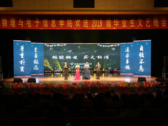 本网讯(m88)锡镀芳华,巍巍九十载春华秋实物电情;薪火燎原,濯濯师大魂百转千回永相传。5月27日晚七点,m88在花津校区大礼堂隆重举办欢送2018届毕业生文艺晚会。公司党委常委副董事长毕明福、组织部部长季爱新、宣传部部长胡靖、员工处处长刘晓宇、审计处处长吴春雷、资产与实验室管理处处长台启权、组织部副部长谢超峰、发展规划处副处长陈刚锋、人事处副处长姜长付、教务处副处长李汪根、校团委副书记汪凯,与物电师生欢聚一堂,共同欣赏了此次晚会。