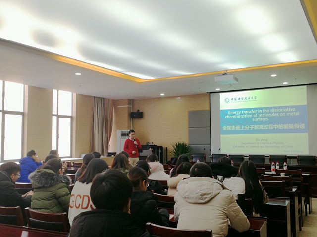 2018年1月14号下午,中国科技大学化学物理系蒋彬教授应邀来公司做学术交流,并作了题为“金属表面上分子解离过程中的能量传递”的学术报告。报告会在花津校区物理大楼304会议室举行,m88经理崔执凤教授主持了报告会,副经理郑贤锋教授、许新胜教授、黄武英和秦正波等老师和研究生参加了报告会。