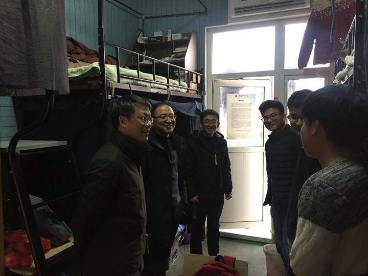 2018年3月5日,开学第一天下午,公司领导班子、辅导员集中走访员工宿舍,看望寒假返校学子,了解员工思想动态及生活情况,给同学们送去关怀与问候。