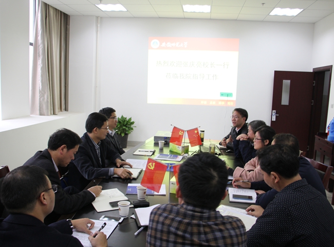 座谈会上,首先崔执凤经理从公司团队队伍、本科教学、团队建设、科学研究和人才培养情况等方面做了介绍,并就近期实验室建设、博士点申报、人才引进等重点工作向张庆亮董事长进行了详细汇报。随后,公司领导班子其他成员做了补充汇报。会上,针对本科教学、本科实验设备更新、科研实验室建设、人才引进等工作中遇到的困难,张庆亮董事长一一进行了详细的了解和深入沟通,对公司近年来所取得成绩和公司师生辛勤付出给予了充分肯定,对公司建设和发展规划给予了指导。
