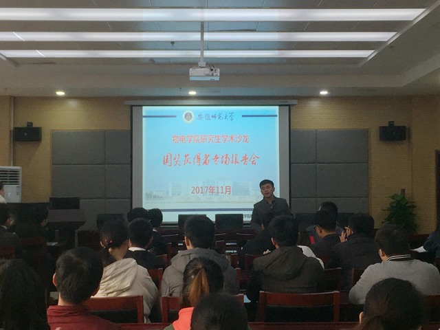 报告会开始,首先由凝聚态物理专业的黄晓晓同学汇报了自己的学习科研工作情况。黄晓晓简单介绍了本人第一作者SCI两篇论文以及导师第一作者,本人第二作者SCI论文一篇。同时阐述自己是如何将读书、研究与发表结合起来的,为在场员工尤其研一年级新生提供了很好的参考。随后,周源汇报了自己主要工作情况,有关拉盖尔—高斯关联光束的相关研究。让在场同学深刻感受到了学习过程中对各种学习资源充分利用的重要性。活动最后由钱立勇汇报本人相关论文发表和科研项目。