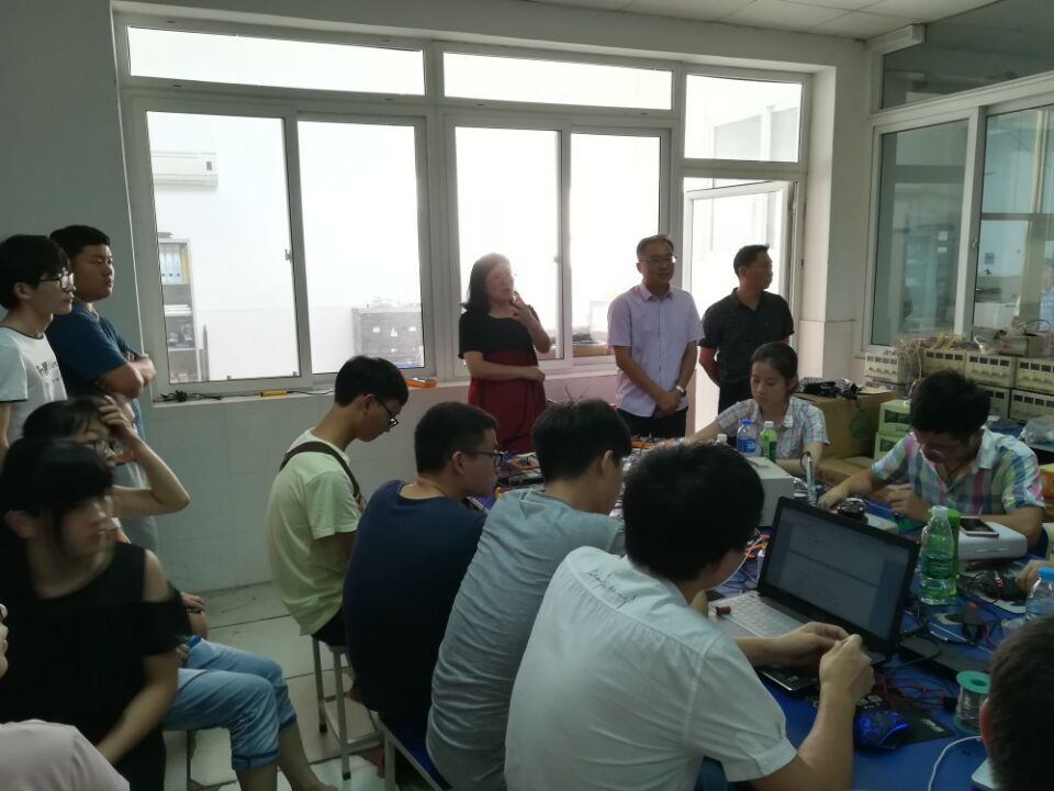实训基地中,同学们认真阅读竞赛书籍,编写程序,调试电路的场景令公司领导十分欣慰。公司党委书记李娟就此高度赞扬了集训同学不畏酷暑、坚守在电子制作一线的工匠精神,同时勉励大家,炎炎酷暑,参与集训的同学们更应抓紧每分每秒,投入到学习实践中,熟练掌握相关知识,锐意进取,克难攻坚,为即将到来的电子设计大赛做好充分的准备。同时,李书记也不忘关心同学们的生活,教育他们在努力准备电赛之余,也要关心自身身体健康,注意安全。同学们备受鼓舞,表示定会不负所托,全力以赴。之后,在相关负责人的带领下,公司向每个电赛小组发放了慰问品。