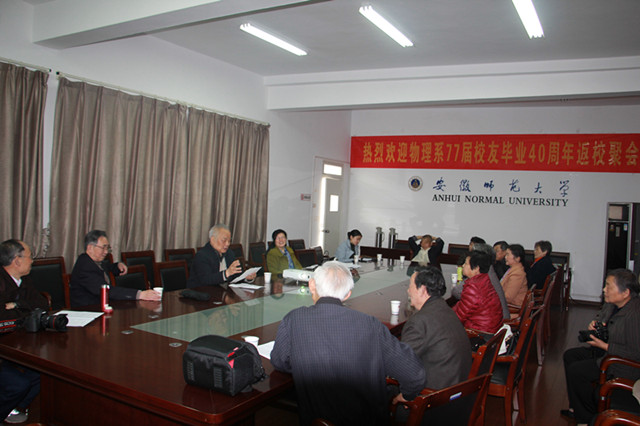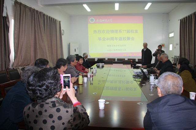 4月8日,来自全国各地的9名公司物理系77届试点班员工重返母校,举办毕业40周年纪念活动,共同追忆同窗往事,感念母校恩师之情。上午9时许,在综合楼五楼会议室召开了师生座谈会,公司党委书记李娟,教师代表傅思欣、严祖同、丁光涛、胡启中出席了会议,会议由员工刘立杰主持。