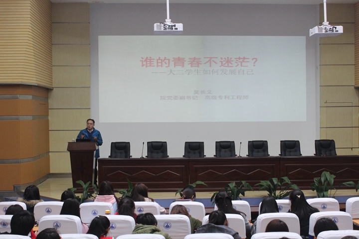 本网讯(m88)为解决2015级员工思想困惑和现实迷茫问题,2017年3月31日晚,公司党委副书记吴长义在赭山校区科技小礼堂举行“谁的青春不迷茫”专题报告会。报告由公司团委副书记米佳佳主持,全体2015级近400名员工共同聆听了报告会。