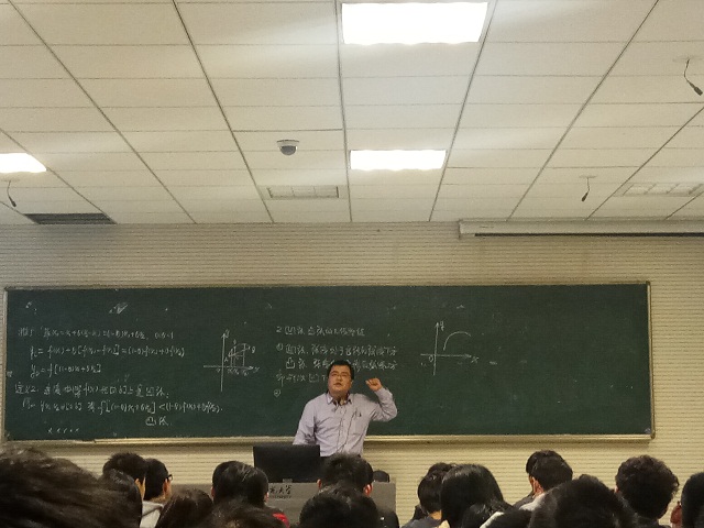 本次授课内容是“函数曲线的凹凸性”,属于《高等数学》中的教学重点。张教授以回顾上节课所学习的函数的单调性为知识背景,提出问题:如何描述和判别函数曲线的凹凸性?引入新课。随后,张教授利用现场手绘的优质函数曲线图像和逐步导出的系列公式,清晰地讲述了函数曲线凹凸性的精确描述方法、判别方法及其在分析物理问题中的应用。在整节课的教学进程中,张教授紧紧抓住新课引入中所提出的问题,层层展开、环环相扣、循序渐进进行讲解,期间一直保持着良好的师生互动氛围,既张弛有度,又富有感染力。其风趣幽默的表达方式将枯燥深奥的抽象理论演绎得通俗易懂,实现了极佳的课堂教学效果。本次示范课充分展示出张教授深厚的理论素养、丰富的教学经验、扎实的教学功底、良好的课堂驾驭能力,博得了听课师生的一致赞扬。