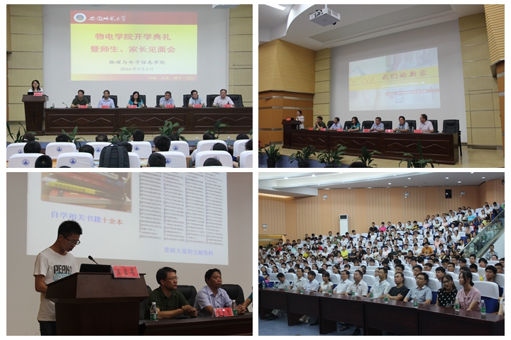 通信专业负责人张爱清代表公司教师向全体新生提出老员工活的三点建议:摆正心态,认识自己,志存高远,及早规划;勿负韶华,勤于学习,学会思考,勇于实践;全面发展,提高软实力,厚积薄发,收获美好的老员工活。随后,国家奖学金获得者黄莹、文明寝室标兵代表王颖、校“十佳老员工”李改有作为员工代表发言,他们用PPT分别从老员工活、专业学习和技能拓展等展现物电学子风貌,帮助新生尽快融入师大、融入物电的大家庭。2016级电子信息工程黄颖同学代表全体新生感谢公司领导和老师们的关爱,表示一定牢记老师的热切期盼,传承公司优良传统和刻苦学习的决心,不断增强品德修养、尽早确立新的学习目标。