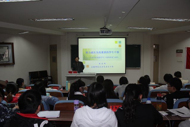 本网讯(m88分党校)4月17日,公司党委学工部部长、员工处处长台启权老师应邀为公司党校、团校培训班讲授《如何成为高素质的员工干部》主题报告。辅导员徐玲老师、全体党校学员、员工会、各年级员工骨干代表出席了本次报告,报告由党校副班主任李亚主持。
