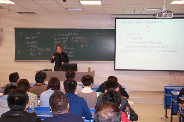 郑睿老师给同学们讲解了步进电机控制技术。通过从步进电机的工作原理、调速原理、控制技术及输出字表、控制程序等四个方面让同学们充分了解步进电机及其运行方式。郑老师的讲课幽默风趣,同学们专心听讲,积极回答问题。整堂课以员工思考为主,教师引导为辅,脉络清晰,层次渐进,形成了良好的师生互动的教学氛围,提高了教学的高效性。