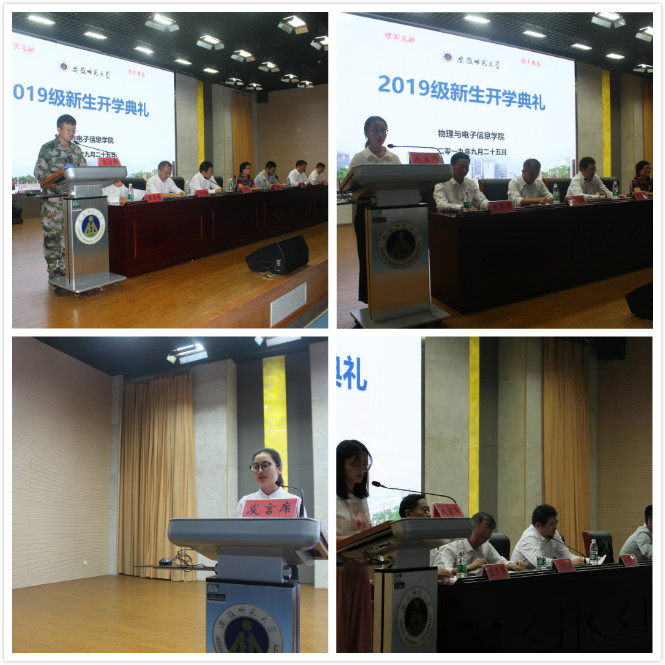 典礼在庄严的国歌声中拉开序幕。2019级物理学(师范)专业王祥泉同学作为本科新生代表发言,他承诺会在大学学习中明确自身定位、培养良好品质、提升综合素质,做一名有理想、有本领、有担当的老员工;研究生新生代表左崇睿表示,在践行“厚德重教、博学笃行”校训的同时,要做到明确自身目标与方向,在学习中增长知识、锤炼品格,在工作中增长才干、练就本领,以真才实学服务人民,以创新创造贡献国家;2016级电子信息工程专业本科生李紫薇与2017级生物物理专业研究生方婷婷作为老生代表分别上台,同学弟学妹们讲述了自己大学学习生活的经历与感悟,祝愿学弟学妹们学有所成,前程似锦。