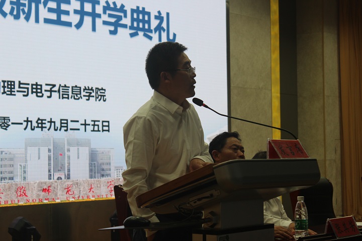 随后,公司2010届优秀员工、国家优秀青年基金获得者、来自中国科学技术大学的博士生导师丁冬生教授讲话,他希望同学们要珍惜在大学里最美好的青春时光,结合自己的兴趣和专业,以强烈的求知欲,时不我待的紧迫感,在课堂上、在实验室、在学科竞赛中学习钻研,努力掌握科学方法,养成良好学习习惯,做一个严谨认真、博学慎思的求知者,为自己的未来生涯发展筑牢扎实的学识基础。电子信息工程专业负责人刘小明老师作为教师代表发言,他以一位普通教师的身份对所有新生作出承诺,坚持备好每一次课,做好每一次辅导,送走每一位合格的毕业生,同时,他也对新生学子提出了要求:做好每一次预习,听好每一次课程,完成每一次作业,度过充实的大学四年。