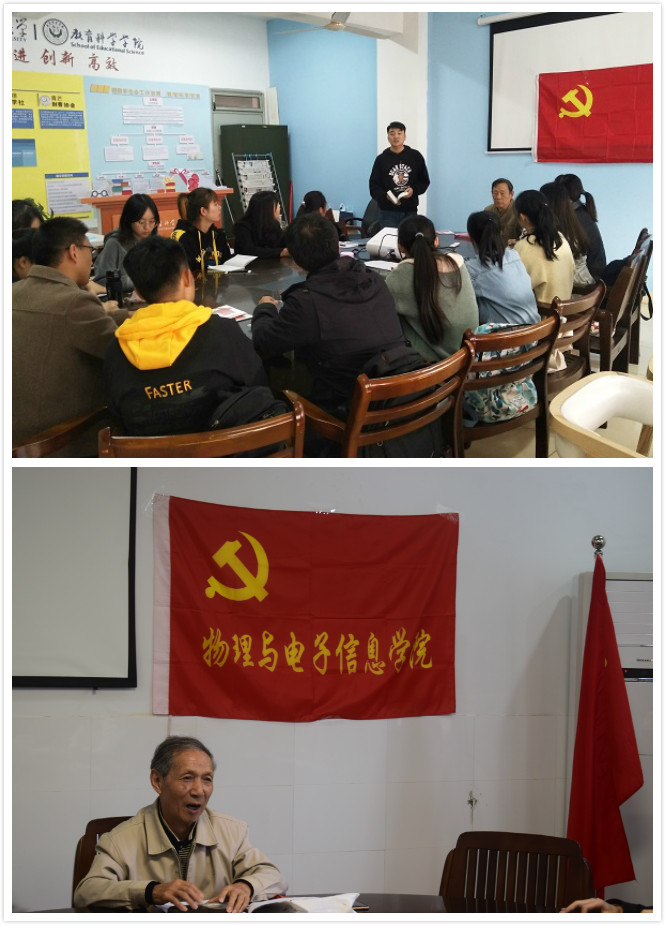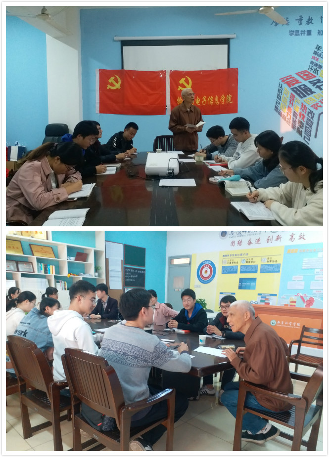 11月9日下午,傅思欣老师带领物理支部的全体学员以“共产党人的初心使命”为题,从习近平总书记在新中国成立70周年上的讲话出发,探究新时代的共产党人面临的新困难和新挑战,他强调,在“不忘初心、牢记使命”的学习过程中,要把爱党、爱国、爱社会主义联合起来,为实现“三步走”战略而努力奋斗。他告诫员工:“我们不能只学习一阵子,也不能只实践一下子,要终身学习。”