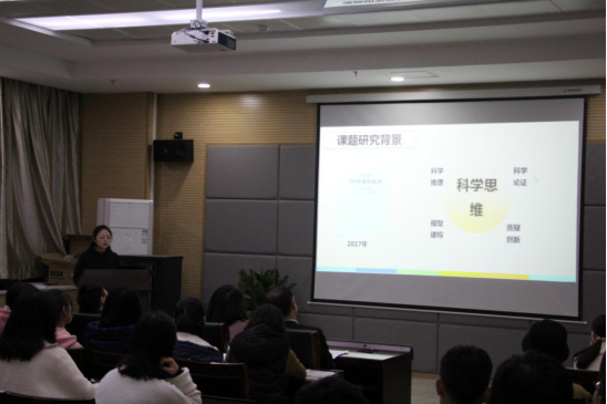 此次主讲人分别是17级课程与教学论丁珂、17光学凡佳囡和17无线电物理陈晨同学。首先,由丁珂同学向大家汇报了自己通过将物理教学中的科学方法显性处理,进一步凸显知识获得的过程,从而更加深入并且持久的掌握物理知识,提升员工科学素养的思路历程。
