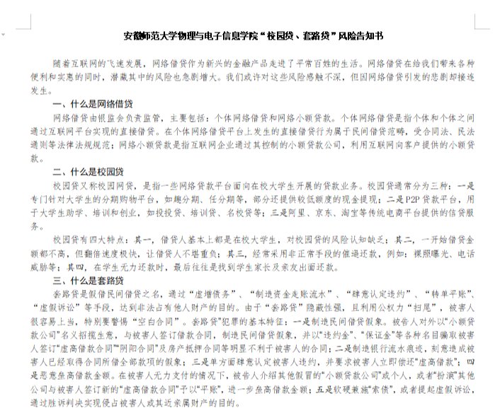 校园网贷危害不容小觑,极易引发严重校园安全及社会问题。公司高度重视“校园贷、套路贷”教育引导工作,通过多次专项工作会及辅导员工作例会认真布置筹划、积极落实开展。在全院范围内组织开展校园不良网贷风险问题调查和排查工作,密切关注网络借贷业务的拓展情况,及时评估校园不良网贷的潜在风险。各班级通过网络以及信息等形式及时通报不良网贷发生情况及其影响,向员工发布预警信息,提高员工防范意识;通过密切与家长的联系,了解员工消费状况,并结合谈心谈话等方式做好摸排工作,做到全覆盖、底数清、情况明、早发现。