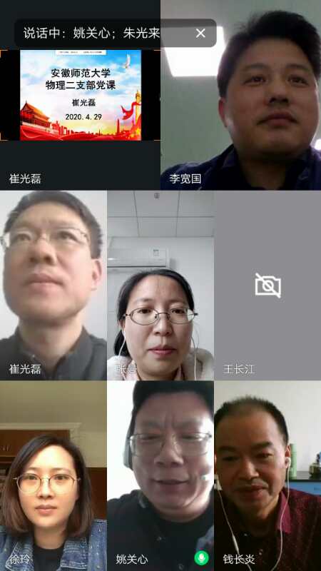 物理二支部全体党员教师一致认为,崔光磊教授的专题党课,主题鲜明,内容丰富,全面解读了吴岩司长《以“学习革命”推动“质量革命”》讲话精神,既有理论高度,又非常接地气,指出当前形势下,各党员教师的初心和使命,积极做好疫情防控期间的教学工作。