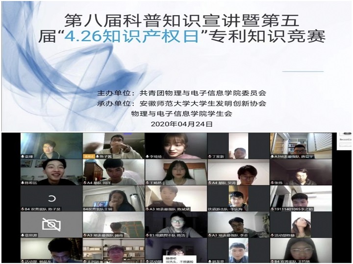 科普竞赛促学习。4月26日,公司举办第五届“4.26知识产权日”专利知识线上竞赛,442名员工参加初赛答题,8支队伍成功晋级决赛。抢答环节中,每组四个队伍进行抢答,内容涵盖知识产权保护、青少年科普等。宣讲环节,各队伍以抽签顺序分为A、B组,分别就疫情防控和科学发展两大主题开展宣讲。队员们赛前充分准备、分工合理,展现出扎实的知识储备和积极向上的青年风貌。