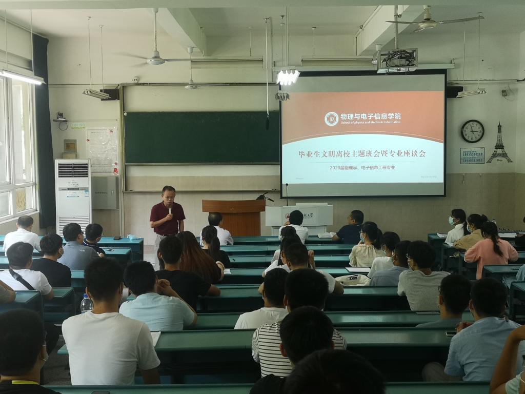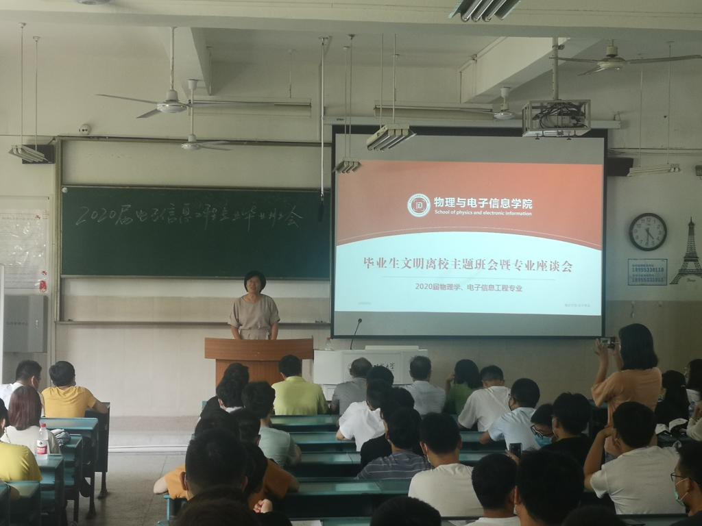 本网讯 (m88 汪光麒)为营造温馨文明的离校氛围,教育引导毕业生文明离校,激发物电学子爱校荣校意识,m88认真制定了文明离校教育方案,精心举办了“锡镀物电 芯火相传”文明离校教育主题班会暨分专业师生欢送座谈会。