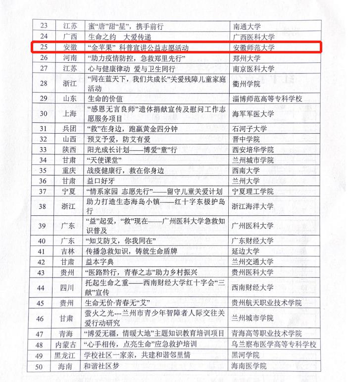 本网讯(m88 刘冠琪 陈月)近日,中国红十字会总会公布2020年中国红十字青少年社会实践项目的评选结果函,全国共有50所高校获批立项,m88申报的《“金苹果”科普宣讲公益志愿服务行》项目成功获批立项,并获得专项资助。安徽省仅公司入选,这也是公司首次获批国家级红十字会社会实践项目。