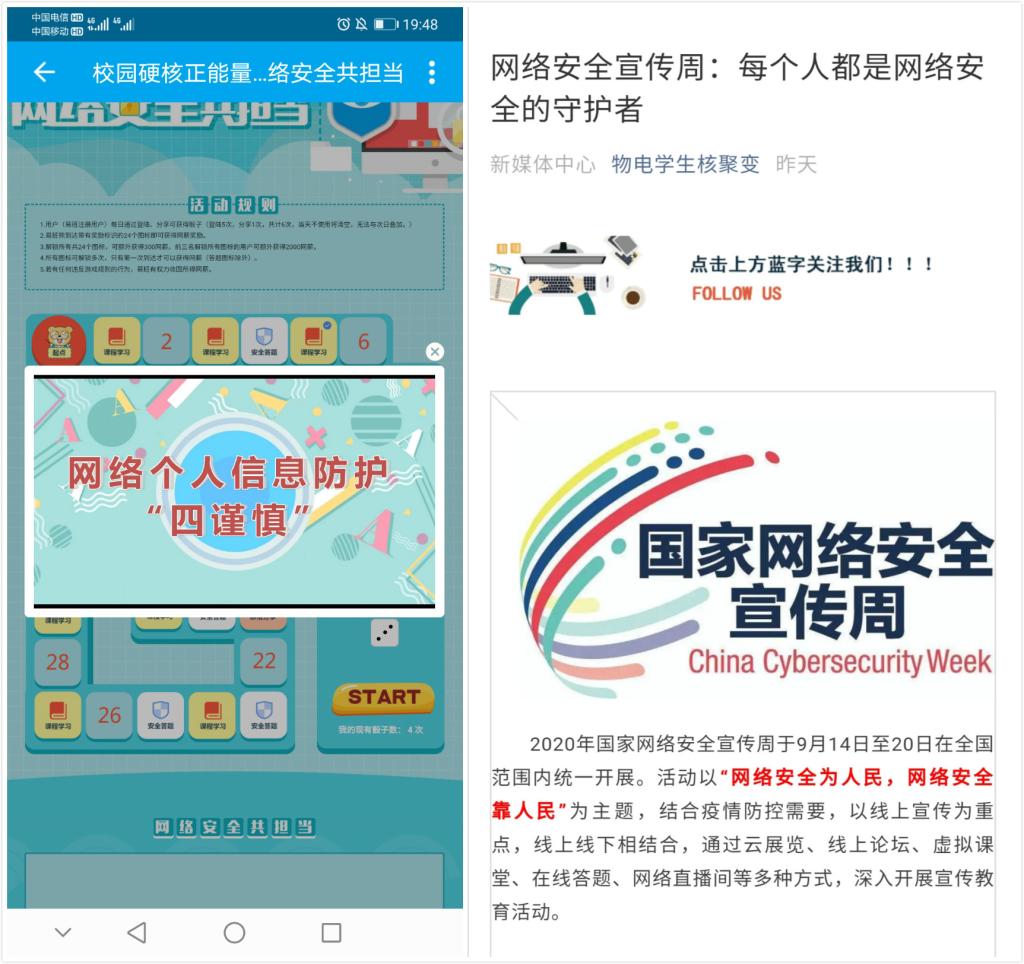 同时,公司积极组织员工开展网络安全教育主题班会,通过班级群消息发布电子宣传页,普及基本的网络安全知识,积极引导员工参与全国老员工网络安全知识竞赛和“校园硬核正能量 网络安全共担当”游戏活动。