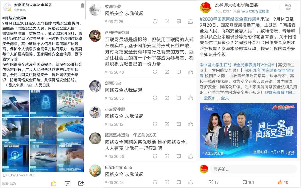 当日,公司组织师生在304会议室观看教育部思政司组织录制的“聚力青春守护安全”网络公开课,公司领导班子与同学们一起观看直播,观看结束后,公司党委书记李娟和同学们就网络安全问题进行了交流,并提醒同学们要有网络安全意识,不要落入诈骗陷阱,人人成为网络安全的守护者。课后,院团委设置开展微话题,组织员工广泛参与线上讨论活动。