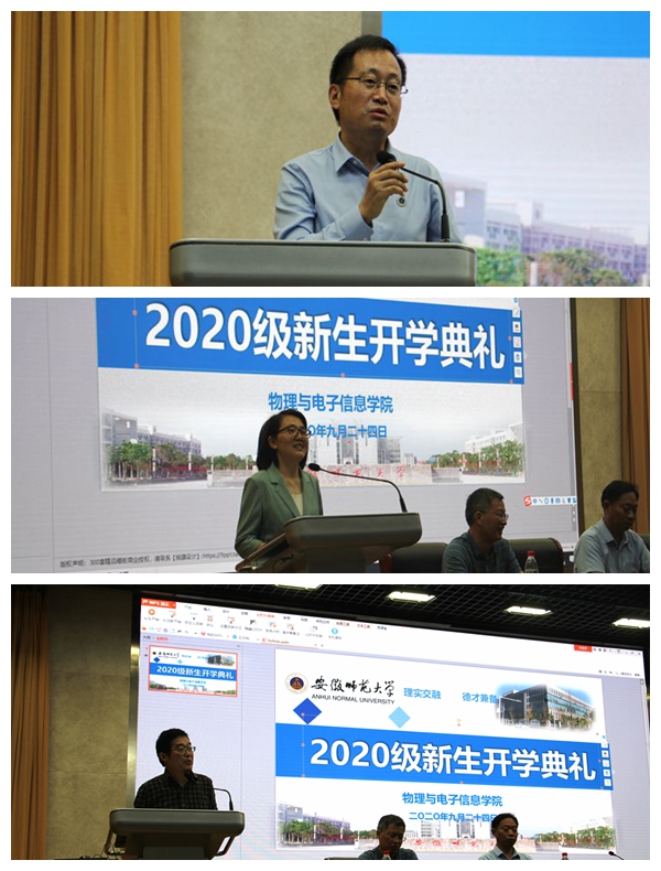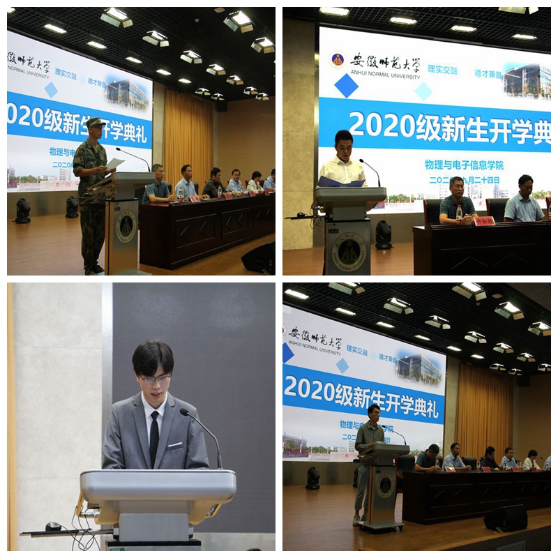 典礼在庄严的国歌声中拉开序幕。2020级物理学专业拔尖人才班万鹏同学作为本科生新生代表发言,他承诺会树立远大理想、尽快转换角色、潜心学习问道,争做有理想、有道德、有文化、有纪律的新时代老员工。研究生新生代表李浩表示,要在践行“理实交融、德才兼备”院训的同时,主动对接国家战略发展需要,明确读研生涯目标,刻苦钻研专业知识,严守学术道德规范,努力成为一个可担大任的新时代青年;2018级电子信息工程本科生解谦与2018级物联网工程专业研究生王勇代表老生分别发言,同学弟学妹们分享了自己在师大学习生活的经历与感悟,祝愿学弟学妹们在新的人生阶段,收获一个丰富多彩的老员工活。