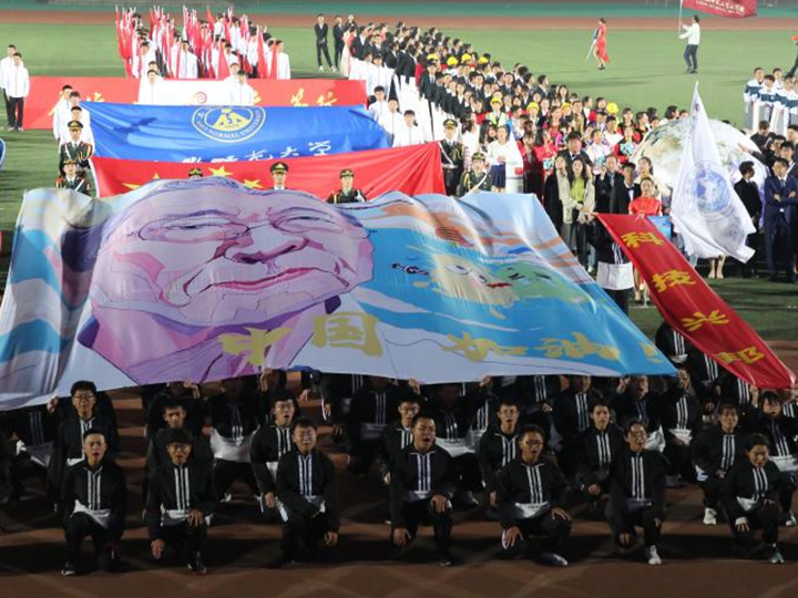 国士无双,科技兴邦。10月27日晚,校运会开幕式上公司方阵队迈着整齐坚定的步伐,喊着铿锵有力的口号,在公司特色科技创新作品“物电先锋号”机器小车的引领走过主席台,向全校师生展示了物电人的风采。公司方阵元素:国士无双,科技兴邦!在特殊年份用这种特别的方式向抗疫英雄致敬。排舞队整齐划一的舞步跳出了物电学子的青春活力,一曲《我们都是追梦人》点燃了全场的热情,将开幕式气氛推向高潮。