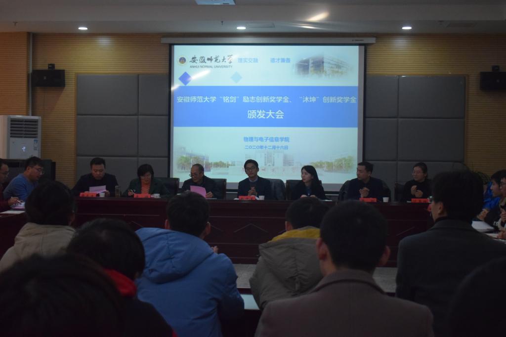 本网讯(m88 汪光麒)12月16日下午,m88“思源”爱心基金第一届“铭剑”励志创新奖学金、第二届“沐坤”创新奖学金颁发大会在物理楼335报告厅举行。上海铭剑电子科技有限公司总经理南建军、合肥沐坤科技有限公司董事长助理宁雨馨、苏州伏波电子科技有限公司公司常务副总经理黄聪、人力资源部部长沈嘉维、校教育基金会秘书长贡植斌、公司党委书记李娟、公司党委副书记黄友生和全体获奖同学参加了颁发大会。大会由黄友生主持。