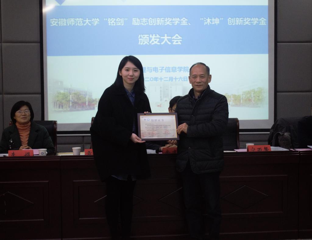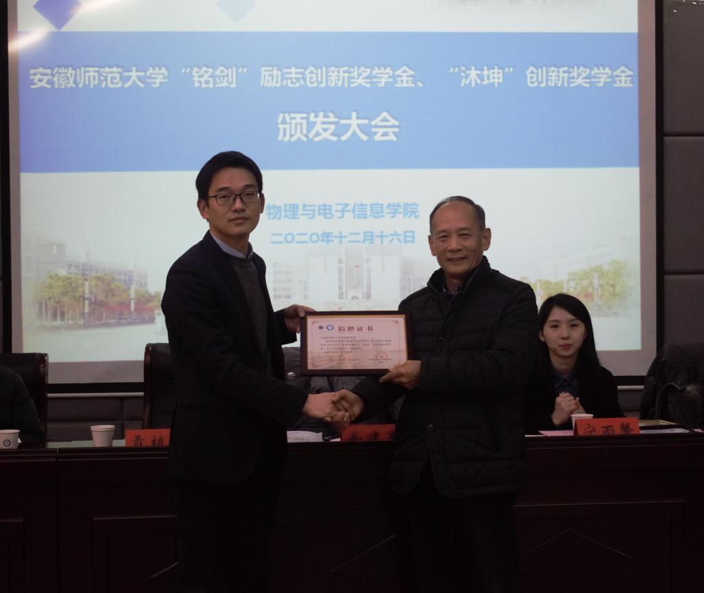 会上,校教育基金会秘书长贡植斌向上海铭剑电子科技有限公司代表南建军和沐坤科技有限公司代表宁雨馨颁发捐赠证书;公司党委书记李娟宣读“铭剑”励志奖学金和“沐坤”创新奖学金颁发决定;南建军总经理和宁雨馨女士向获奖员工代表颁发获奖证书。2018级自动化专业刘涛、2017级通信工程专业苏进作为获奖员工代表分享了自己的成长历程,表达了对上海铭剑电子科技有限公司和沐坤科技有限公司捐资助学的崇高敬意,并立志在以后的学习生活中,心存感恩,怀揣梦想,不断创新、不断前行,以实际行动回馈社会。