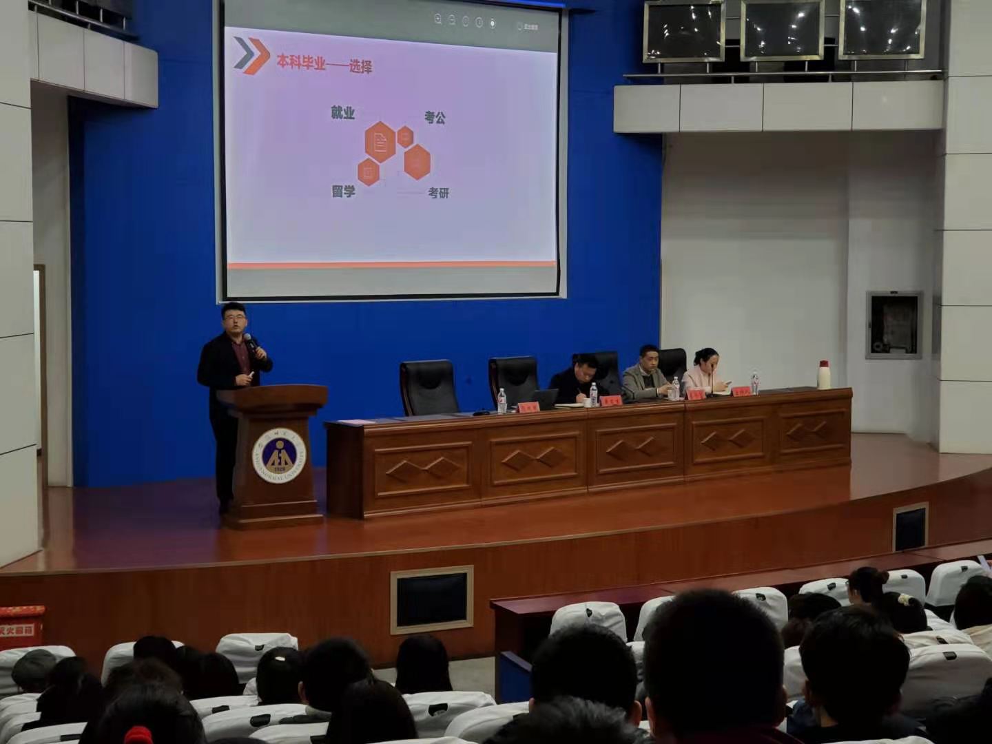 会上,考研研究专家段鹏越老师作了专题辅导报告。他从应届生就业、考公、考研、出国留学的优劣势对比的角度,充分分析了近几年考研的相关数据,从考研复习策略、时间管理、志愿填报、考研心态等方面,全面深入分析了当前考研的基本形势,鼓励同学们要坚定考研之路,正确选择公司和专业,努力实现人生的价值和追求。
